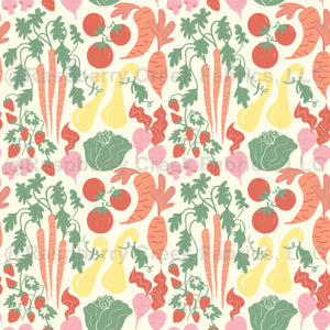 Illustrated Colorful Garden Vegetables Fruits, Carrots, Tomatoes, Lettuce, Squash, Radishes, Strawberries. Kitchen Decor, Hand Towels, Garden Aprons, Gardner Gifts.