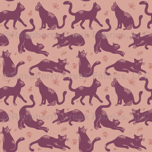 Hand-Illustrated Purple Floral Cats on dusky orange with little flowers. Perfect for animal lovers!