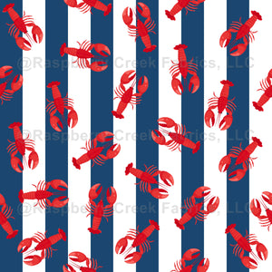 Illustrated Red Lobsters on Dark Blue Stripes