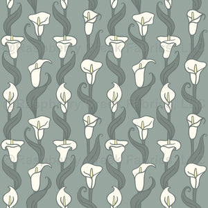 Hand-Illustrated White Calla Lillies with Green Leaves and Background, Floral Stripe. Soft, unique flowers. Would make great hand towels, table runners, pillows and other home decor.