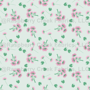 In the Clover Patch, Florals, Clover Bloom on Green, pink, four leaf clover