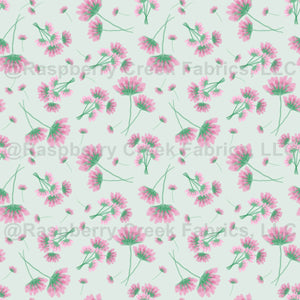 In the Clover Patch, Scattered Clover blossom on green, Pink, Floral