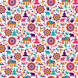 India Collection: Colorful Elephants, Palm Trees, Mandala