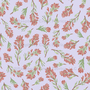 Apart of Erica Catherine's US State Flower Collection, the Indian Paintbrush Flower represents both the State of Wyoming. The Wild Red flowers are shown on top of a purple color background.