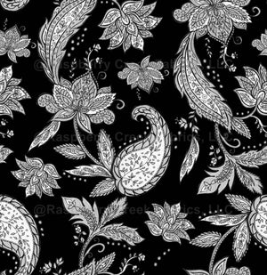 Indian style pattern design with Paisley and flowers motifs. Black and White monochrome colors.