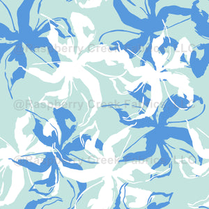 Indigo Spring - stunning large scale hand painted flowers, perfect for ladies ware or anything else, with fun, retro vibe!