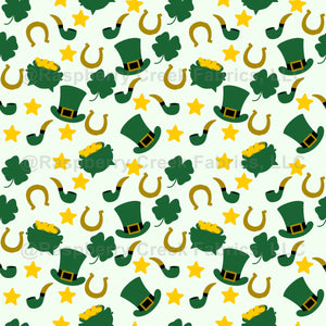 "Irish Leprechauns" is a whimsical and charming seamless pattern featuring illustrations of mischievous leprechauns dressed in green attire, often with hats and pots of gold. This design captures the playful and magical spirit of Irish folklore, making it a delightful choice for projects that celebrate St. Patrick's Day or embrace the enchanting world of leprechauns.