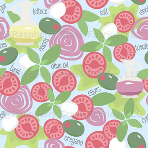 Italian Summer Caprese Salad on Pastel Cornflower d9efff