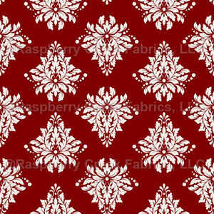 Ivory Damask on Dark Red