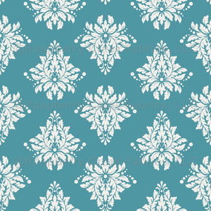 Ivory Damask on Teal