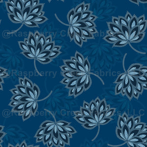 An all-over floral pattern, inspired by Jacobean patterns and textiles in a bright and bold blue colour-way.