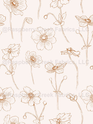 Japanese anemones - Floral design - whimsical flowers - by Brittany Polatis - Retro blooms collection - neutral color palette