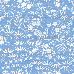 Japanese block print foliage in periwinkle blue and white. Distressed laundered look print for a casual mood. Perfect for mens summer shirts or shorts, girls dresses, and quilting.