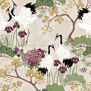 Japanese Garden Plum and Gold with Enlarged Birds Wallpaper
