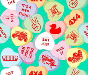Jeep Conversation Heart Candy on Teal Mint