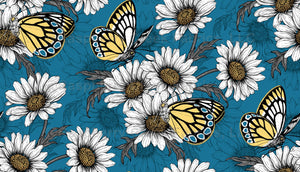 Hand drawn vector pattern with jezebel butterflies and daisy flowers