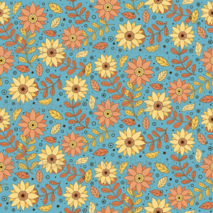 Simplistic and joyful sunflower pattern on bright blue background. Perfect for summer and early autumn.