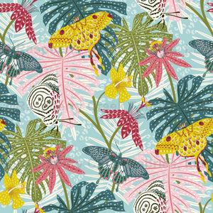 Jungle Butterflies and Flowers Light Blue - Tropical Lounge Collection
