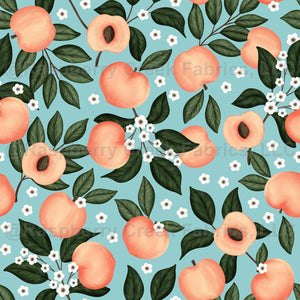 Just Peachy, floral, spring floral, flowers, botanical, pink, green, blue, peach, brown, aqua, leaves, peaches, blossoms, spring blossoms