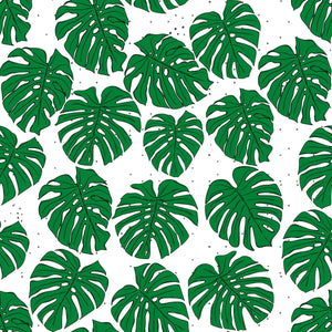 Kelly Green and White Monstera Leaf Print Fabric, I Heart Sun by Bri Powell