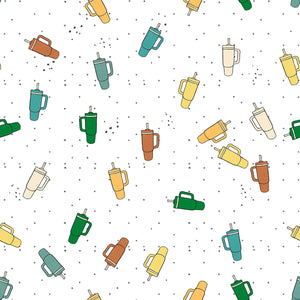 Kelly Green Rust Yellow Light Teal Steel Blue and Cream Hydration Print Fabric, I Heart Sun by Bri Powell