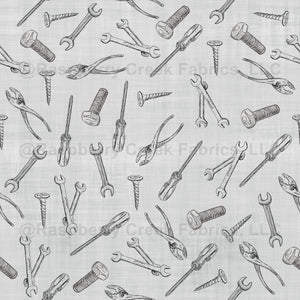ketched Tools on Light Gray Linen - large