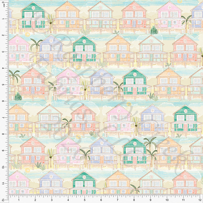 Khaki Deep Lilac Orange Light Peacock Beach Bungalows, Florida by Bri Powell for CLUB Fabrics