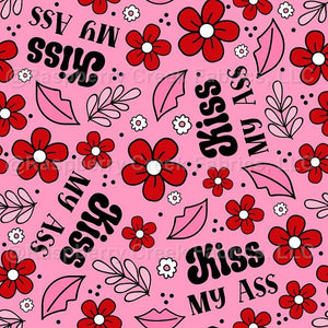 Kiss My Ass Sarcastic Sweary Floral on Pink