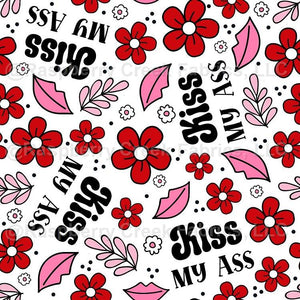 Kiss My Ass Sarcastic Sweary Floral Pink and Red on White