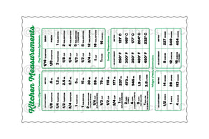 Kitchen Measurements Infographic Tea Towel - Green & Black