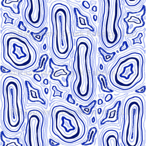 Inspired by the knots and burls in beautiful pieces of wood, I created this abstract contour drawing in shades of navy, indigo, and larkspur blue on white by using different digital brushes to add texture.