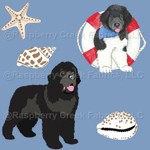 Landseer Newfoundland Dogs Water Rescue Sea Shells watercolor Wilma blue