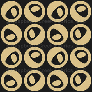Large black gold eyed dots tasselating stripes art deco style. Understated elegance with ornamental charm. The muted, elegant color palette lends a timeless and refined appearance. For modern interiors, textiles and wallpapers.