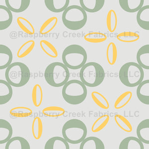 Large chalk grey green holed dots with yellow stars diagonal art deco style. Understated elegance with ornamental charm. The muted, elegant color palette lends a timeless and refined appearance. For modern interiors, textiles and wallpapers.