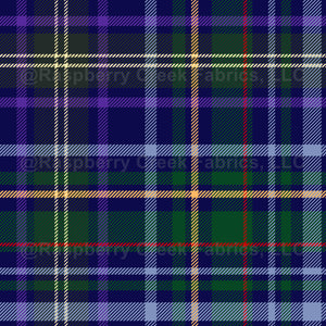 Large dark welsh style tartan. The colors depict the overall vibe of Wales: woods, meadows, sky, waters, bluebells, daffodils and the red dragon. Thinner double yellow and a red line, base colors in blue and green.