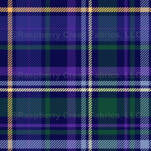 Large dark welsh style tartan. The colors depict the overall vibe of Wales: woods, meadows, sky, waters, bluebells, daffodils. Thinner yellow, orange and light blue stripes, base colors in blue and green.