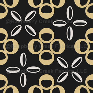 Large gold black white holed dots with yellow stars diagonal art deco style. Understated elegance with ornamental charm. The muted, elegant color palette lends a timeless and refined appearance. For modern interiors, textiles and wallpapers.