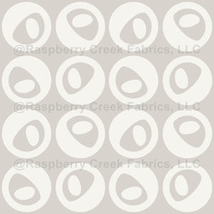 Large greige beige eyed dots tasselating stripes art deco style. Understated elegance with ornamental charm. The muted, elegant color palette lends a timeless and refined appearance. For modern interiors, textiles and wallpapers.
