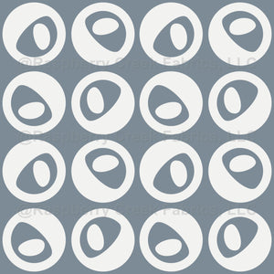Large grey blue eyed dots tasselating stripes art deco style. Understated elegance with ornamental charm. The muted, elegant color palette lends a timeless and refined appearance. For modern interiors, textiles and wallpapers.