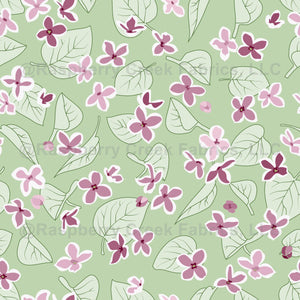 Large lilac blossoms with leafs blockprint light green pink rose. Welcome spring to your home. When you see these lilac blossoms and flowers imagine the intoxicating scent evoking feelings of nostalgia and serenity.