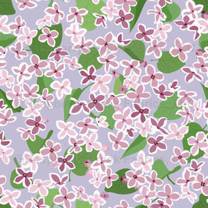 Large pink red lilac blossoms all over with leafs tossed spring green purple violet. Welcome spring to your home. When you see these lilac blossoms and flowers imagine the intoxicating scent evoking feelings of nostalgia and serenity.