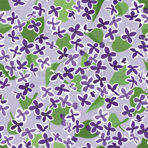 Large purple lilac blossoms all over with leafs tossed spring green violet. Welcome spring to your home. When you see these lilac blossoms and flowers imagine the intoxicating scent evoking feelings of nostalgia and serenity.