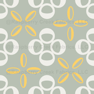 Large salt green holed dots with yellow stars diagonal art deco style. Understated elegance with ornamental charm. The muted, elegant color palette lends a timeless and refined appearance. For modern interiors, textiles and wallpapers.