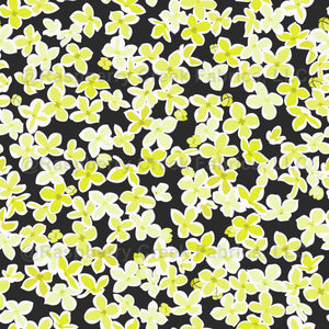 Large yellow lilac blossoms all over tossed floral spring black. Welcome spring to your home. When you see these lilac blossoms and flowers imagine the intoxicating scent evoking feelings of nostalgia and serenity.