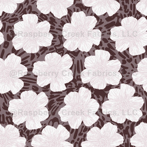 Part of the Pua Kala Garden Collection. Featuring pua kala line art with beige flowers popping through the dark oak background.