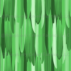Long layered feathers in shades of grass green and butterfly green create an interesting design.