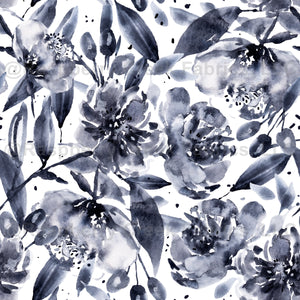 Laynie-Black and White Fantasy Watercolor Floral designed for the Fantasy Watercolor Floral Collection. Large watercolor blooms from an Original watercolor painting using Paynes Gray, giving this element botanical floral a modern black and white feel.