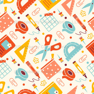 Learning, education or handcrafting concept with stationery supplies. Hand drawn school themed vector backdrop