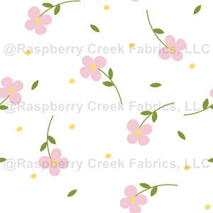 Lemon Blossom Collection, White Background,Pink Flowers, Citrus Print, Whimsical Design