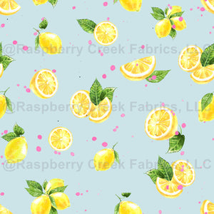 Lemons on blue/ Lemon fabric/ kitchen/ summer/ fruit fabric